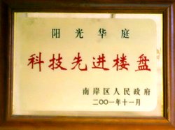 ? 2001年,陽(yáng)光華庭榮獲“陽(yáng)光華庭科技先進(jìn)樓盤(pán)”、“陽(yáng)光華庭優(yōu)秀住宅小區(qū)”、“陽(yáng)光華庭優(yōu)秀規(guī)劃環(huán)境”