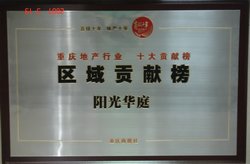 ? 2007年,陽光華庭 被評為重慶地產(chǎn)行業(yè)十大貢獻榜區(qū)域貢獻獎