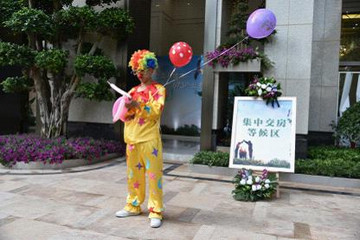 等候區大門外小丑為小業主們編織著可愛的氣球,冷餐區擺放著美麗又可口的糕點,等待業主們回家享用。