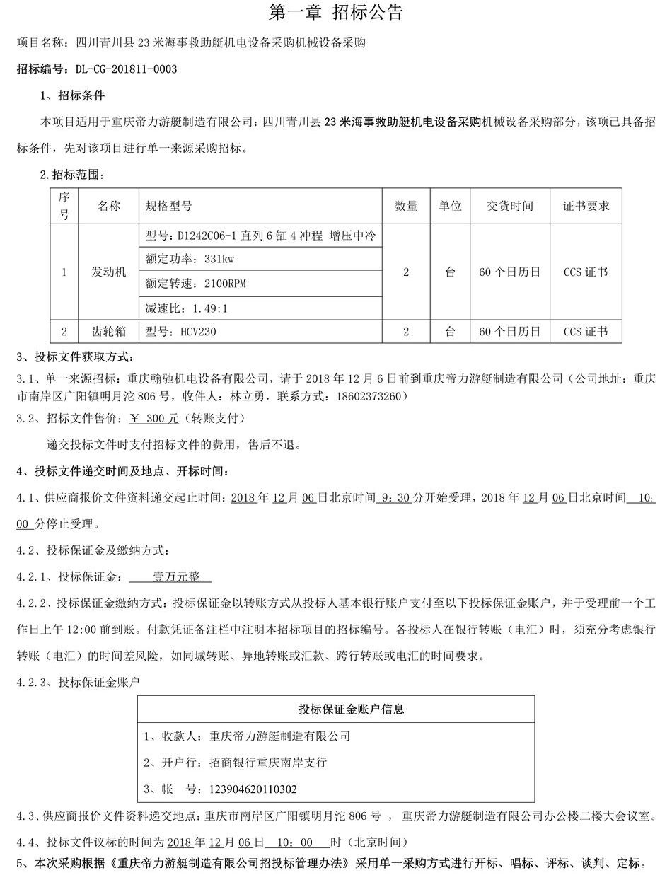 四川青川縣23米海事救助艇機電設備采購機械設備采購