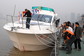 2010年11月11日16:50時,隨著清脆的笛音、參觀人群的歡呼聲、照相機的咔嚓聲,重慶市有史以來自主建造的最大規(guī)格豪華游艇--“躍浪”順利停靠在南濱路驕陽游艇俱樂部游艇碼頭。