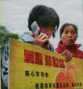 病魔無情,人間有愛。4月8日上午,洋世達(dá)集團(tuán)公司總裁、凱誼公司總經(jīng)理?xiàng)顒伲诳吹健堕L壽文化》報(bào)道云集鎮(zhèn)飛龍學(xué)校16歲女孩陳心萍因?qū)W習(xí)用功過度導(dǎo)致失明而不能繼續(xù)上學(xué)的新聞后,引起強(qiáng)烈震撼。“這個(gè)娃兒太可憐了,我們不能袖手旁觀,一定要為孩子做點(diǎn)什么!”百忙之中的楊總立即決定,委托凱誼公司袁鴻賓副總經(jīng)理代表本人及公司,將10萬元愛心款和祝福專程送到小心萍手上。