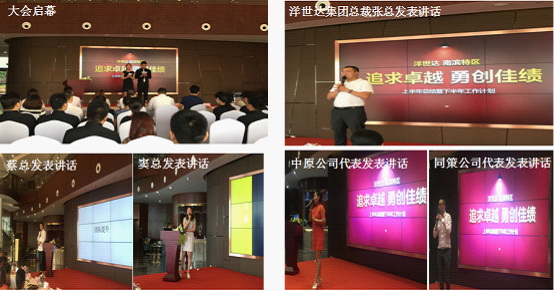 6.20日下午2:30下午”洋世達.南濱特區上半年總結暨下半年計劃”大會在洋世達.南濱特區銷售中心隆重舉行,雖然上半年工作取得了一定的成績但同時也需亟待提升,洋世達、代理公司(中原、同策)三方團隊銷售、策劃、品管、大客戶渠道各版塊分別對上半年工作完成情況、存在的問題以及下半年的計劃進行匯報,洋世達集團公司總裁張總親臨現場并發表重要講話,ELAB集團蔡總、竇總對上半年工作完成情況進行了精彩的點評并對下半年工作戰略和戰術提出明確的方向,下半年工作的重點三方團隊需轉變思路-“溢價”、“保量”、“執行力”為三方團隊下半年工作重點,三方團隊表示將全力沖刺下半年4.8億元的銷售額目標,達成年度目標,確保市場口碑、銷售成績雙豐收。